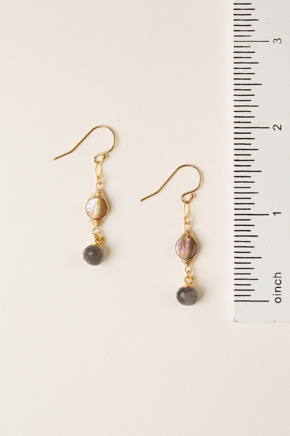 Alchemy Abalone, Grey Moonstone Drop Herringbone Earrings