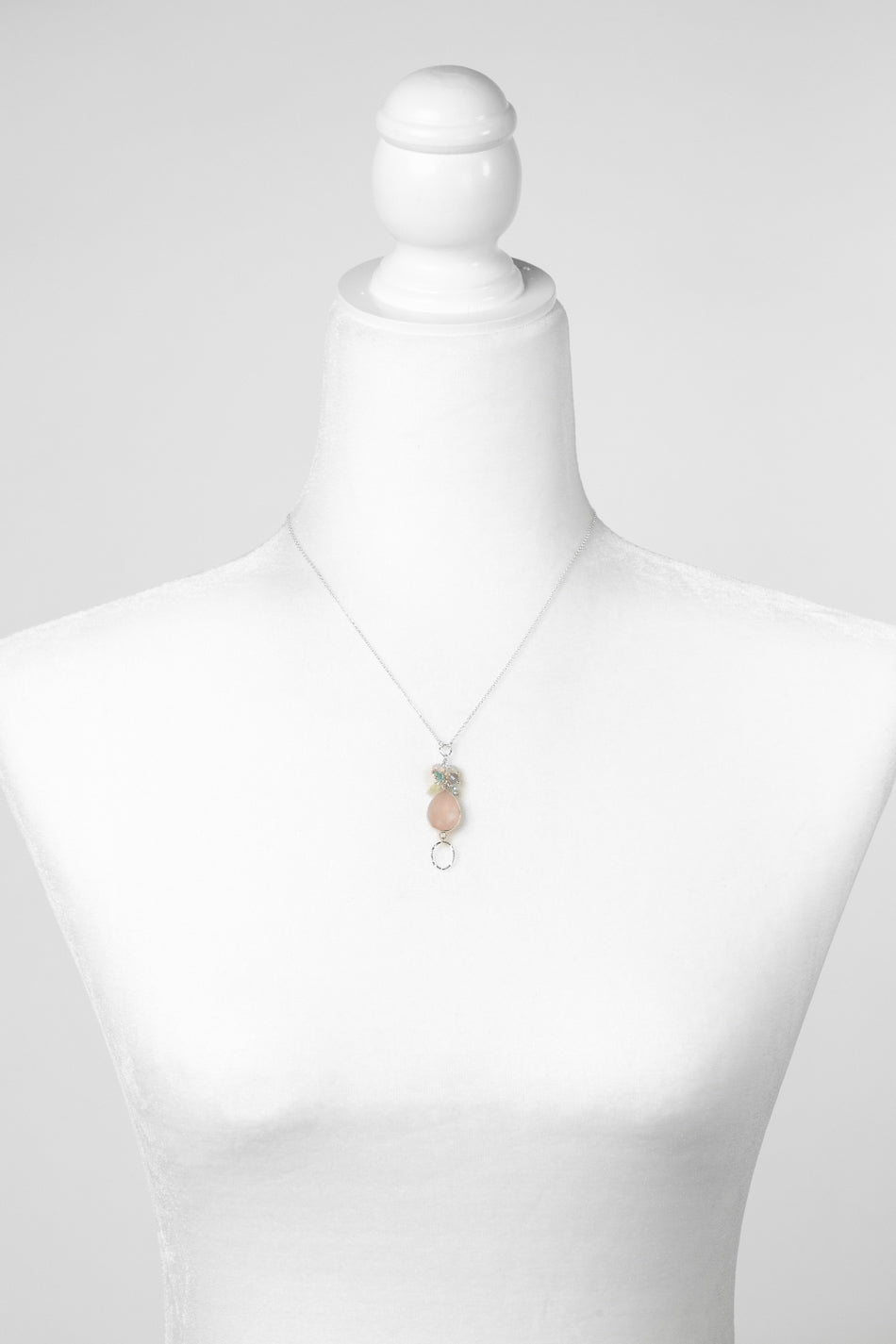 Fae 16-18" Faceted Teardrop Shape Rose Quartz With Blue Apatite, Iolite, Freshwater Pearl, And Prehnite Cluster Necklace