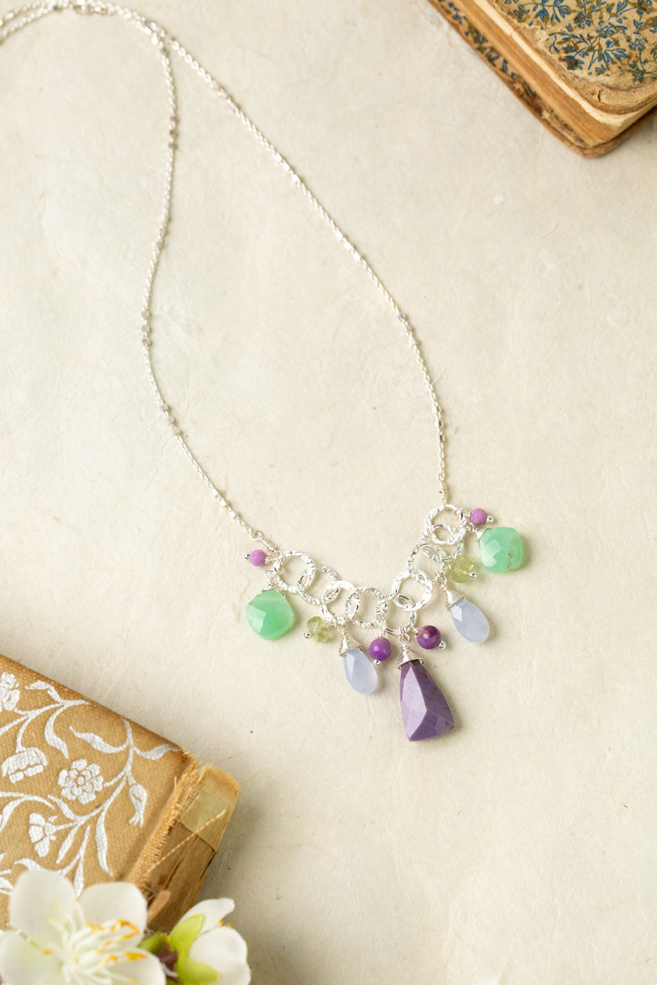 Cave Spring 16.5-18.5" Blue Lace Chalcedony, Chrysoprase, Green Moss Aquamarine with Phosphosiderite Simple Necklace