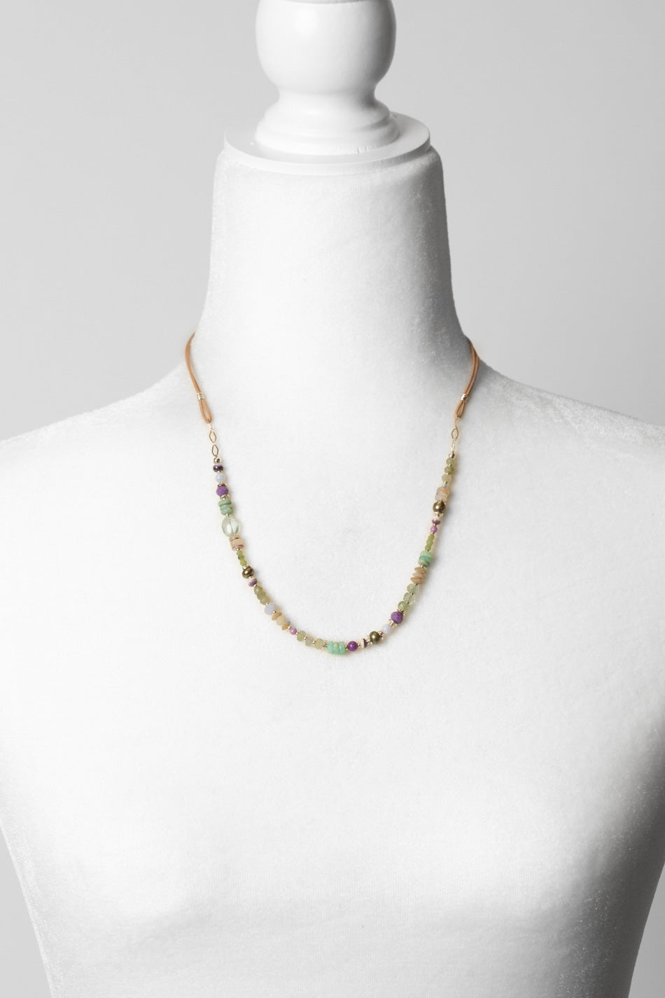 Cave Spring 21-23" Blue Lace Chalcedony, Chrysoprase, Green Moss Aquamarine With Phosphosiderite Collage Necklace