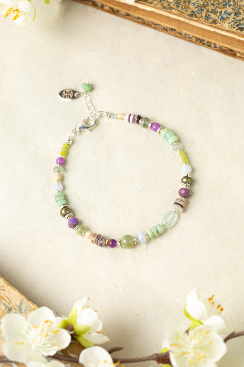 Cave Spring 7.5-8.5" Blue Lace Chalcedony, Chrysoprase, Freshwater Pearl With Phosphosiderite Collage Bracelet