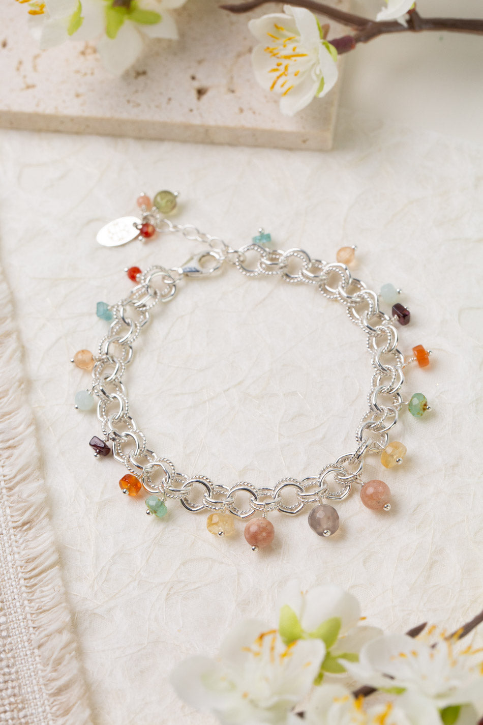 Gentle Breeze features a delicate palette of pastel stones, earthy tones, and subtle shimmer. Each piece is handcrafted with a thoughtful blend of gemstones, creating a harmonious dance of color and texture.