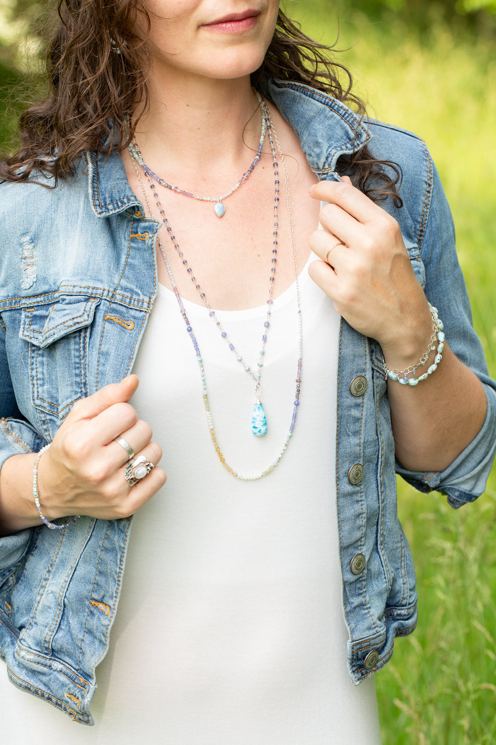 Sanctuary 33-35" Larimar, Amethyst, Blue Opal Simple Necklace