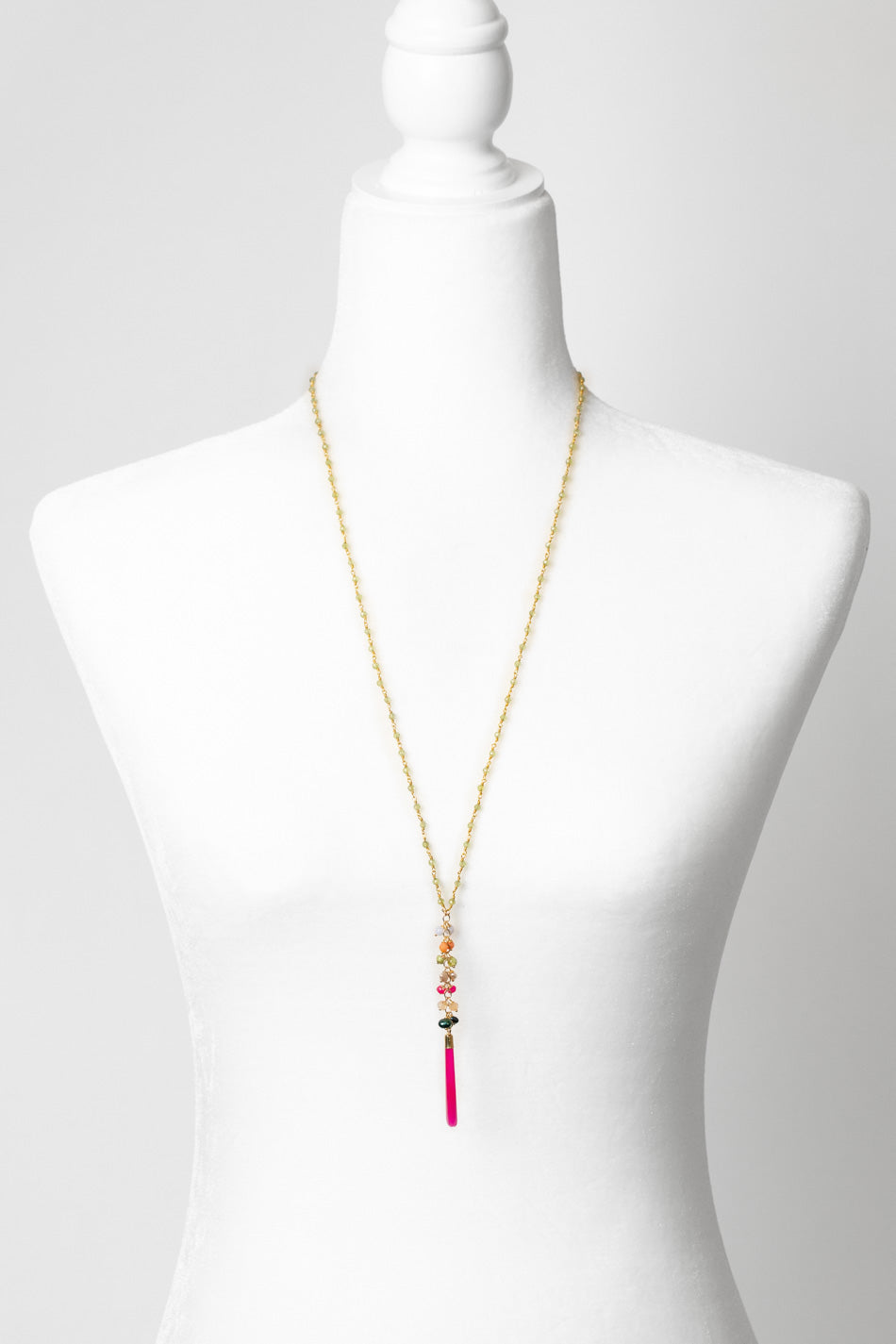 Splendor 29.5-31.5" Fuchsia Jade Pendant, Freshwater Pearl, Coral Cluster Necklace