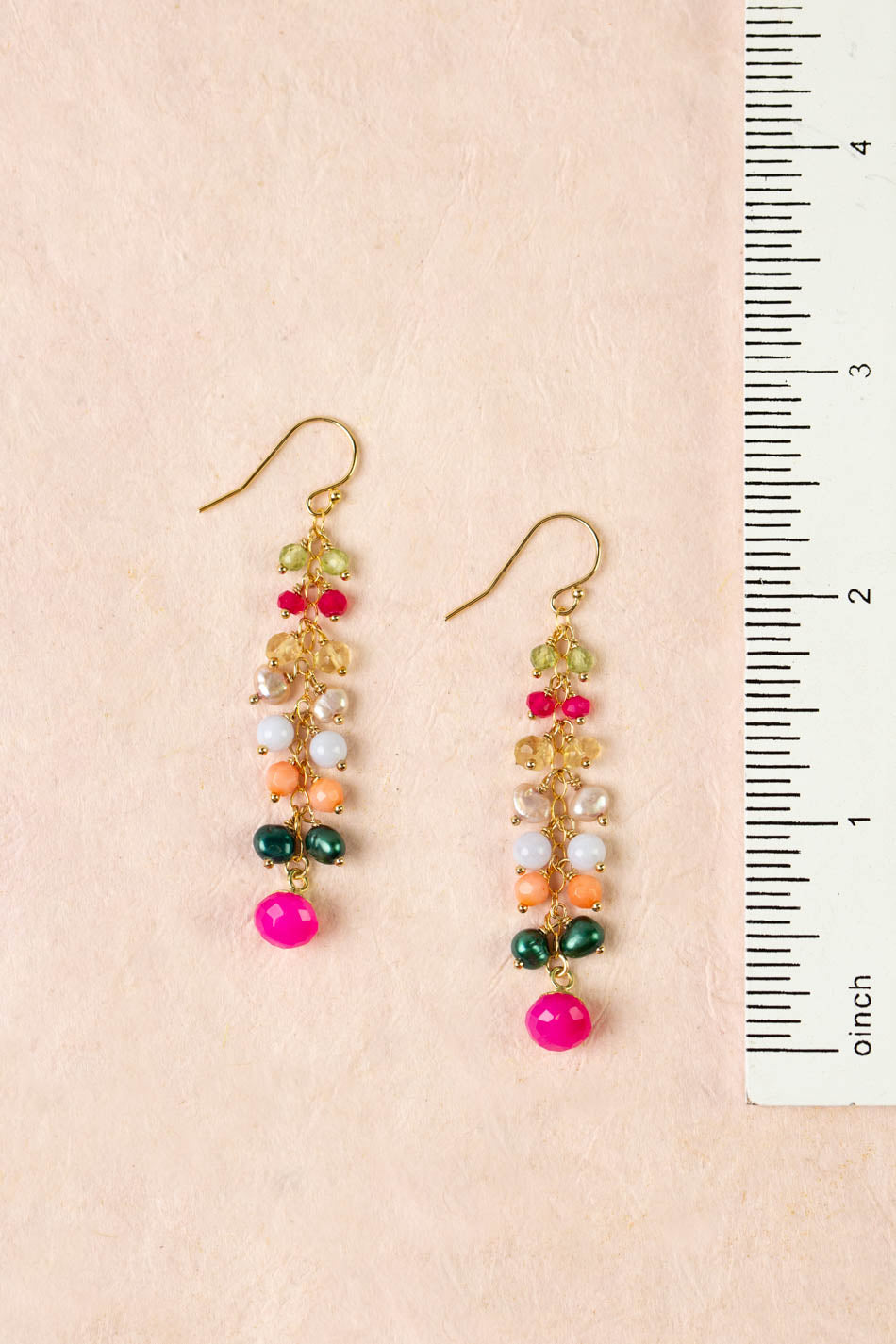 Splendor Fuchsia Jade Bezel Drop, Peridot, Blue Lace Agate Cluster Earrings