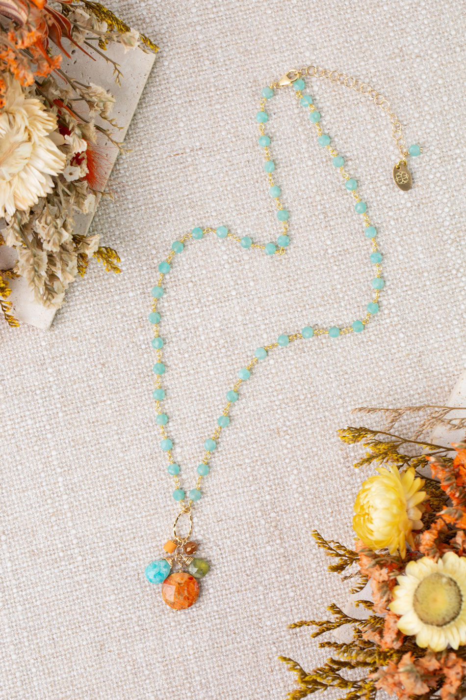 Secret Garden 16.25-18.25" Carnelian, Apatite, Amazonite Simple Necklace