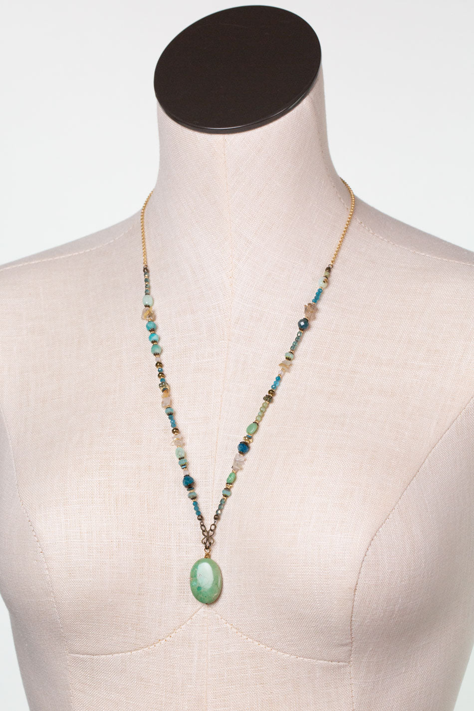 One of a Kind 23.5-25.5" Czech Glass, Apatite With Chrysoprase Statement Necklace