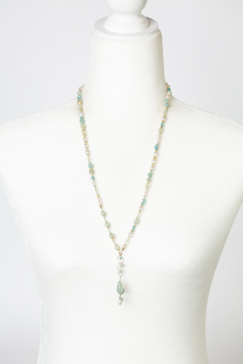 Serenity 25.5-27.5 Aquamarine, Freshwater Pearl, Apatite Dangle Pendant Necklace