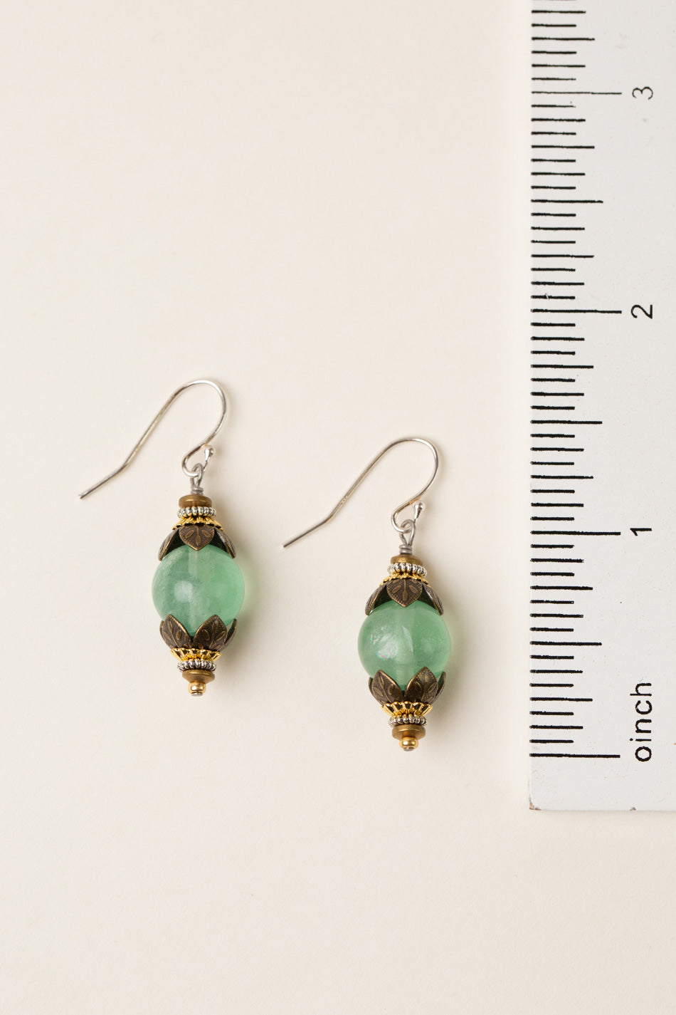 Aspire Green Fluorite With Gold Plated Brass Flowers Simple Earrings