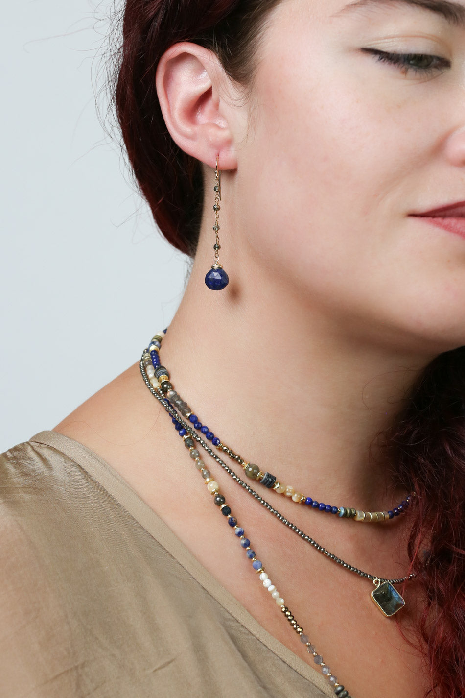 Blue Moon 21-23" Pyrite, Labradorite, Lapis Lazuli Multistrand Necklace