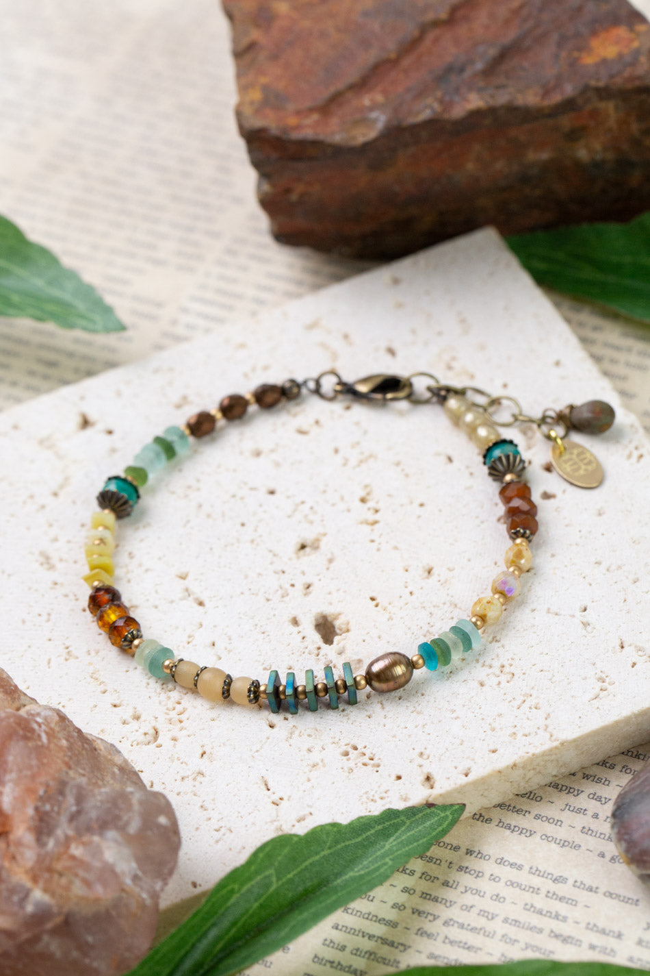 Atlas 7.5-8.5" Roman Glass, Czech Glass, Honey Opal Simple Bracelet