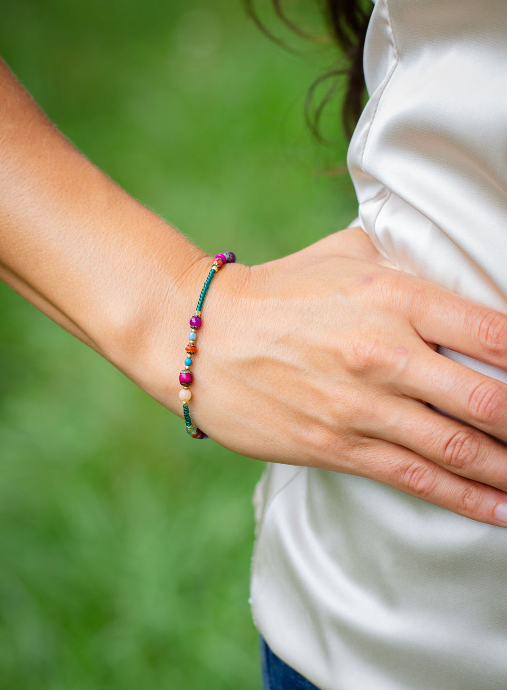 Mardi Gras 7.5-8.5" Czech Glass Simple Bracelet