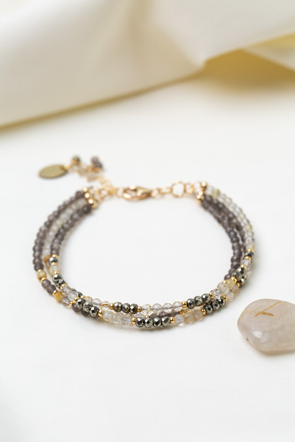 Alchemy 7.75-8.75" Gold Rutilated Quartz, Pyrite, Moonstone Multistrand Bracelet