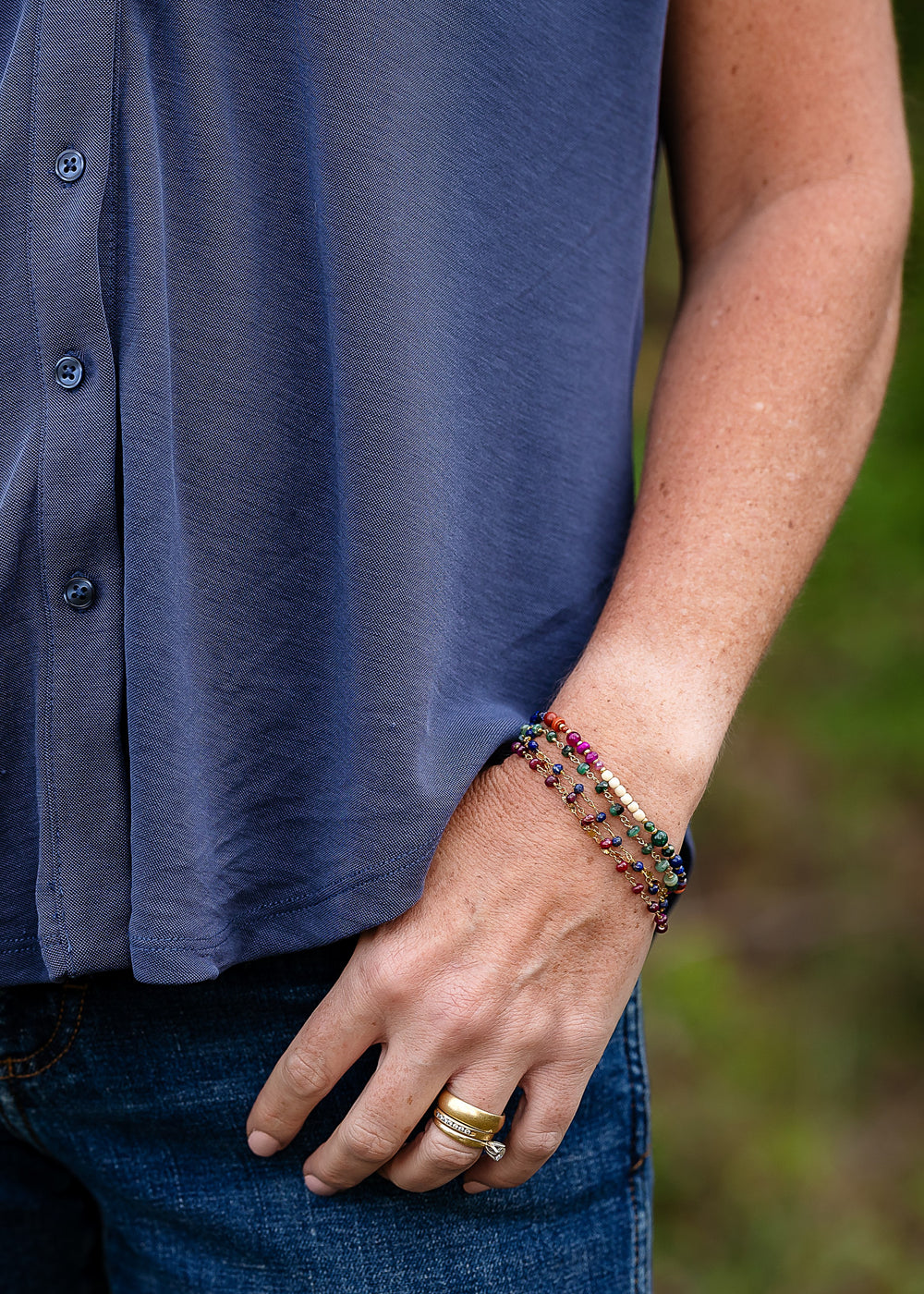 Forget Me Not 7.5-8.5" Red Jasper, Fuchsia Jade, Lapis Lazuli, Emerald, Ruby Multistrand Bracelet