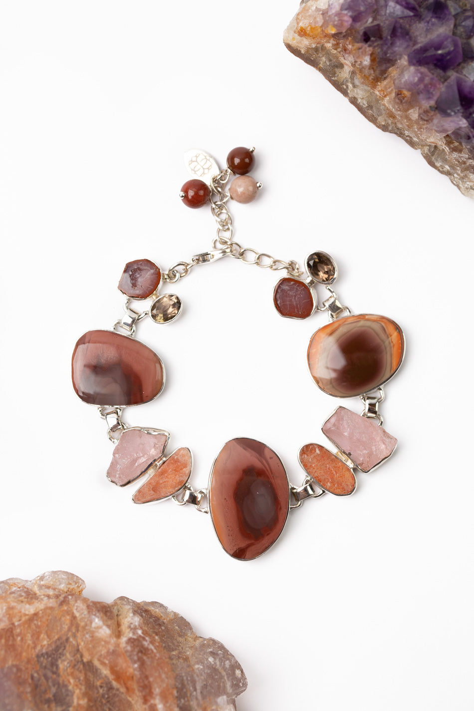 One Of A Kind 6.5-7.5" Rose Quartz, Sunstone, Tourmaline with Imperial Jasper Simple Bracelet