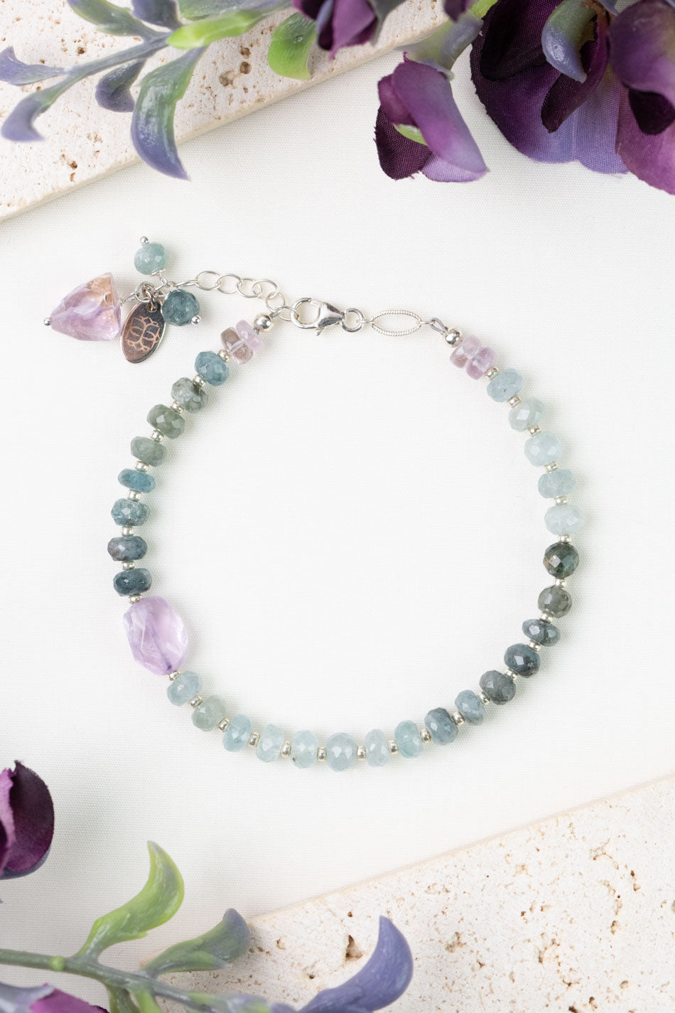 One Of A Kind 7.5-8.5" Green Moss Aquamarine, Amethyst Simple Bracelet
