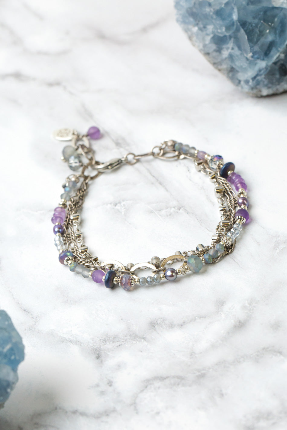 Reflections 7.5-8.5" Freshwater Pearl, Czech Glass, Crystal Multistrand Bracelet