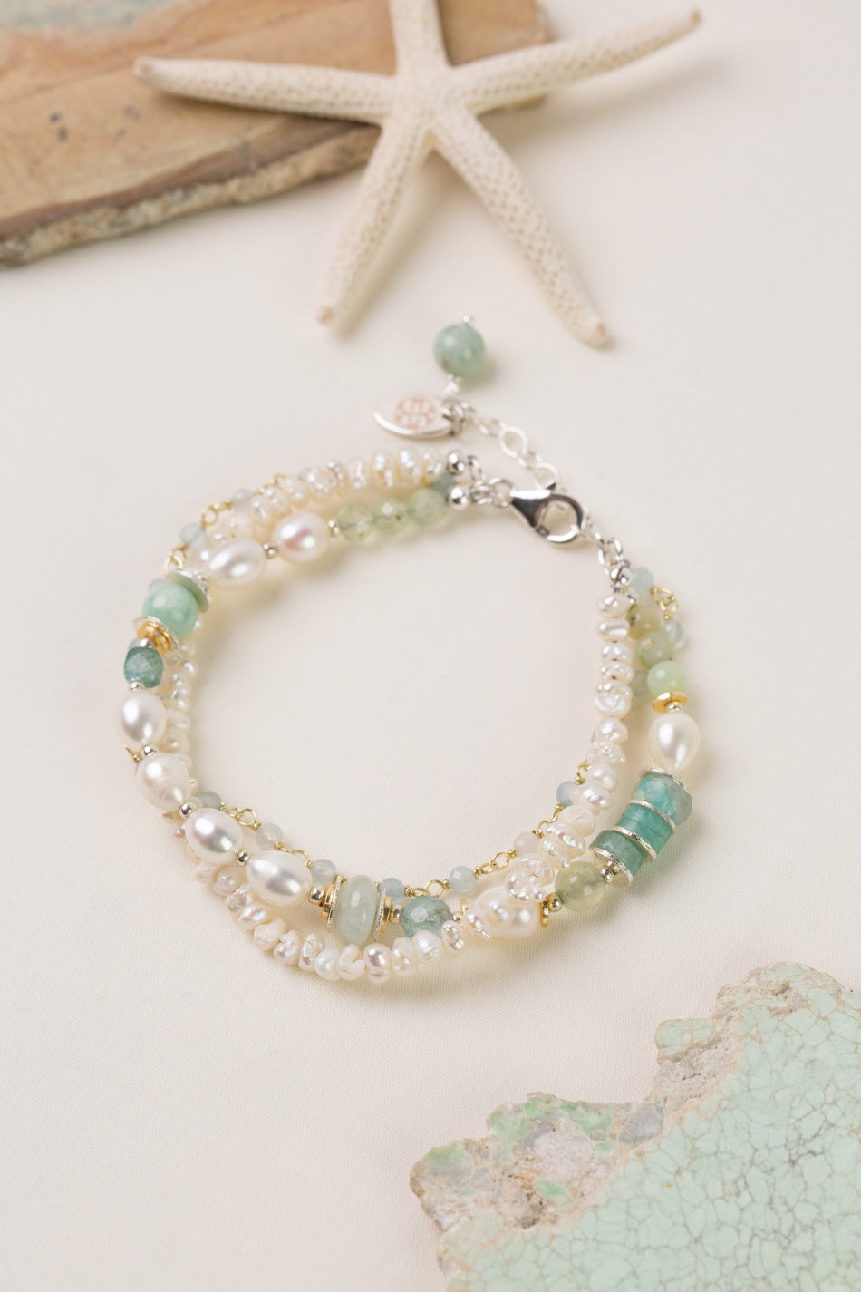 Serenity 7.5-8.5" Apatite, Amazonite, Freshwater Pearl Multistrand Bracelet