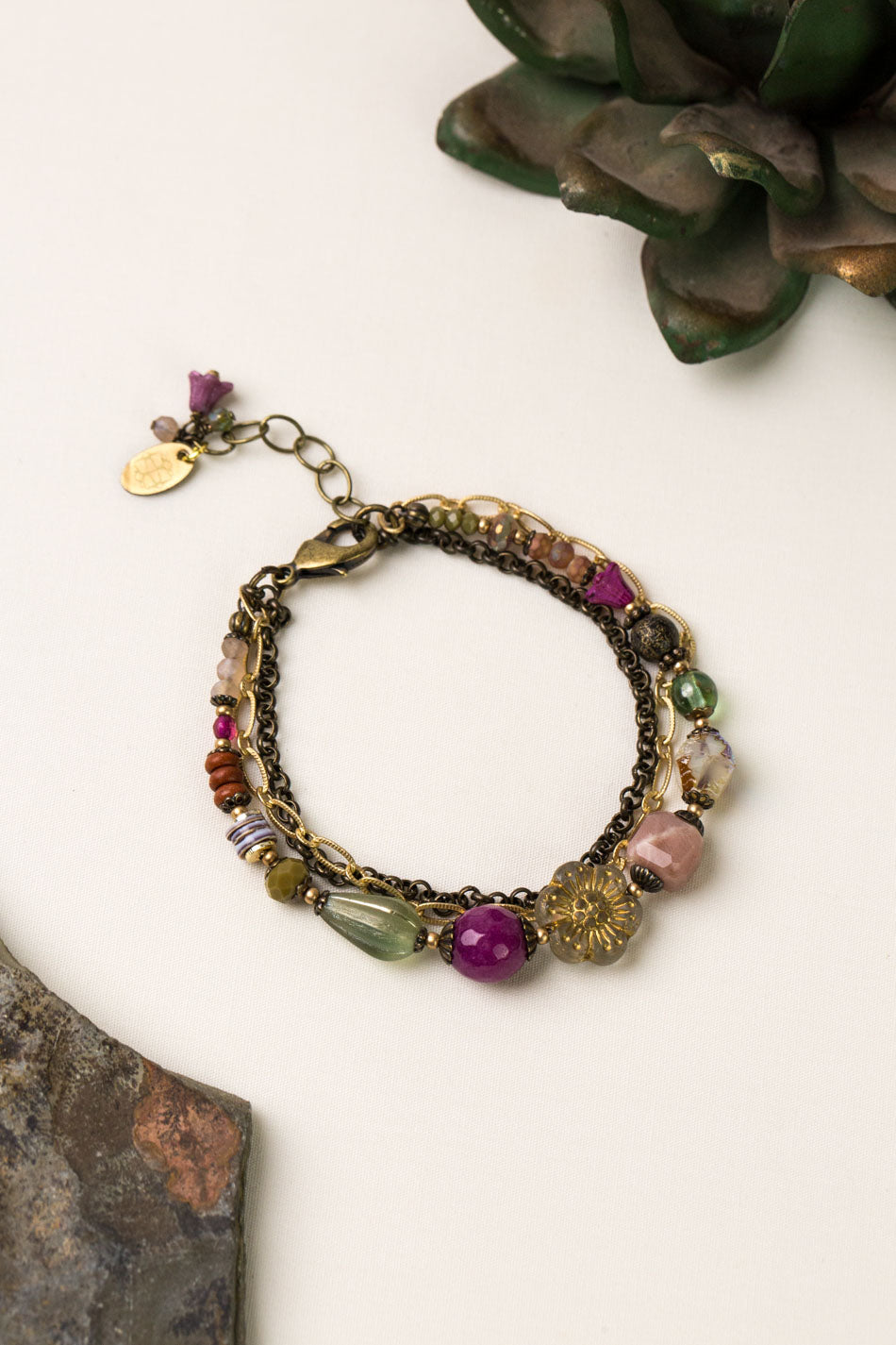 - 7.5-8.5", adjustable with antique brass lobster claw clasp