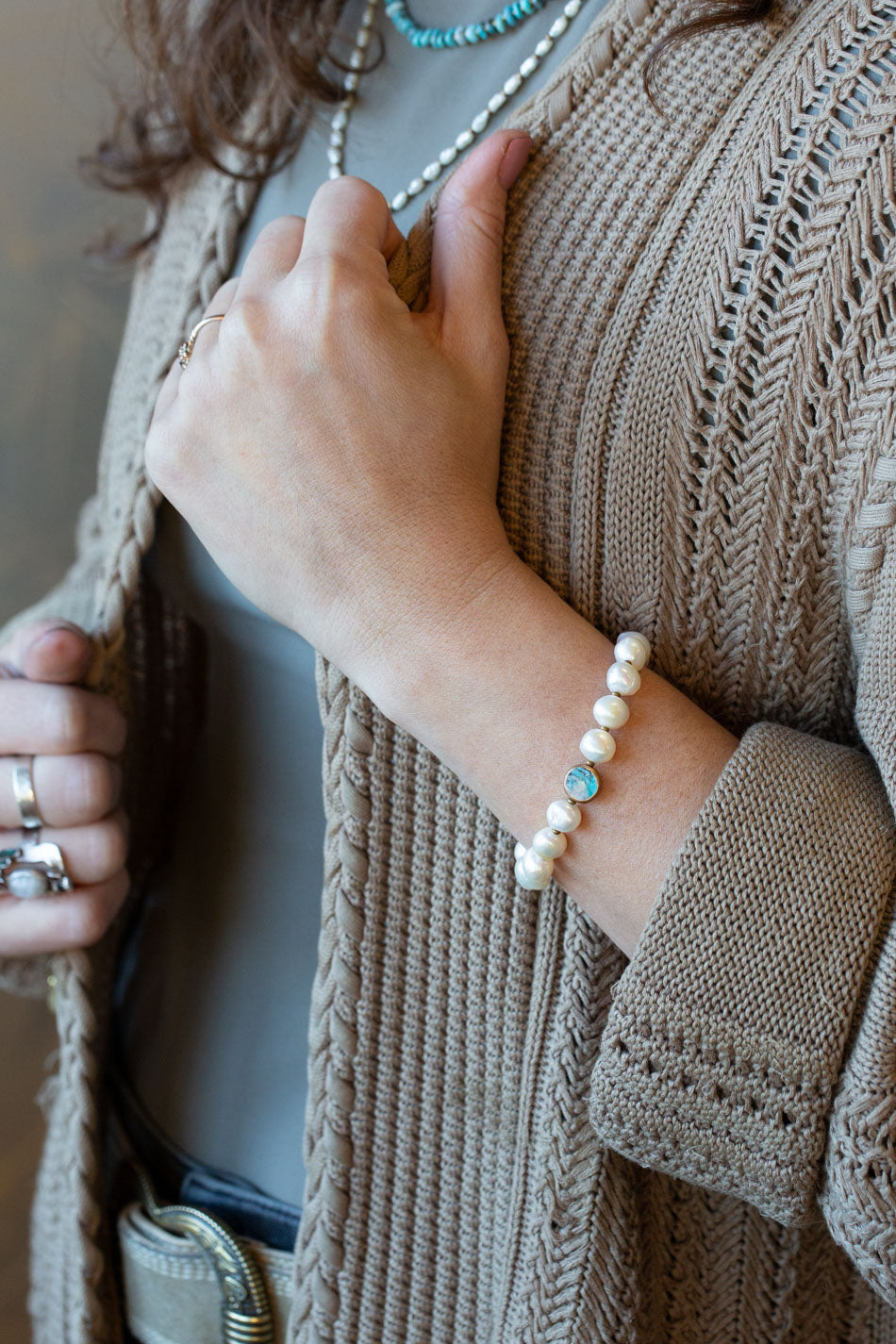 Transcend 7.5-8.5" Turquoise, Pearl, White Moonstone Simple Bracelet