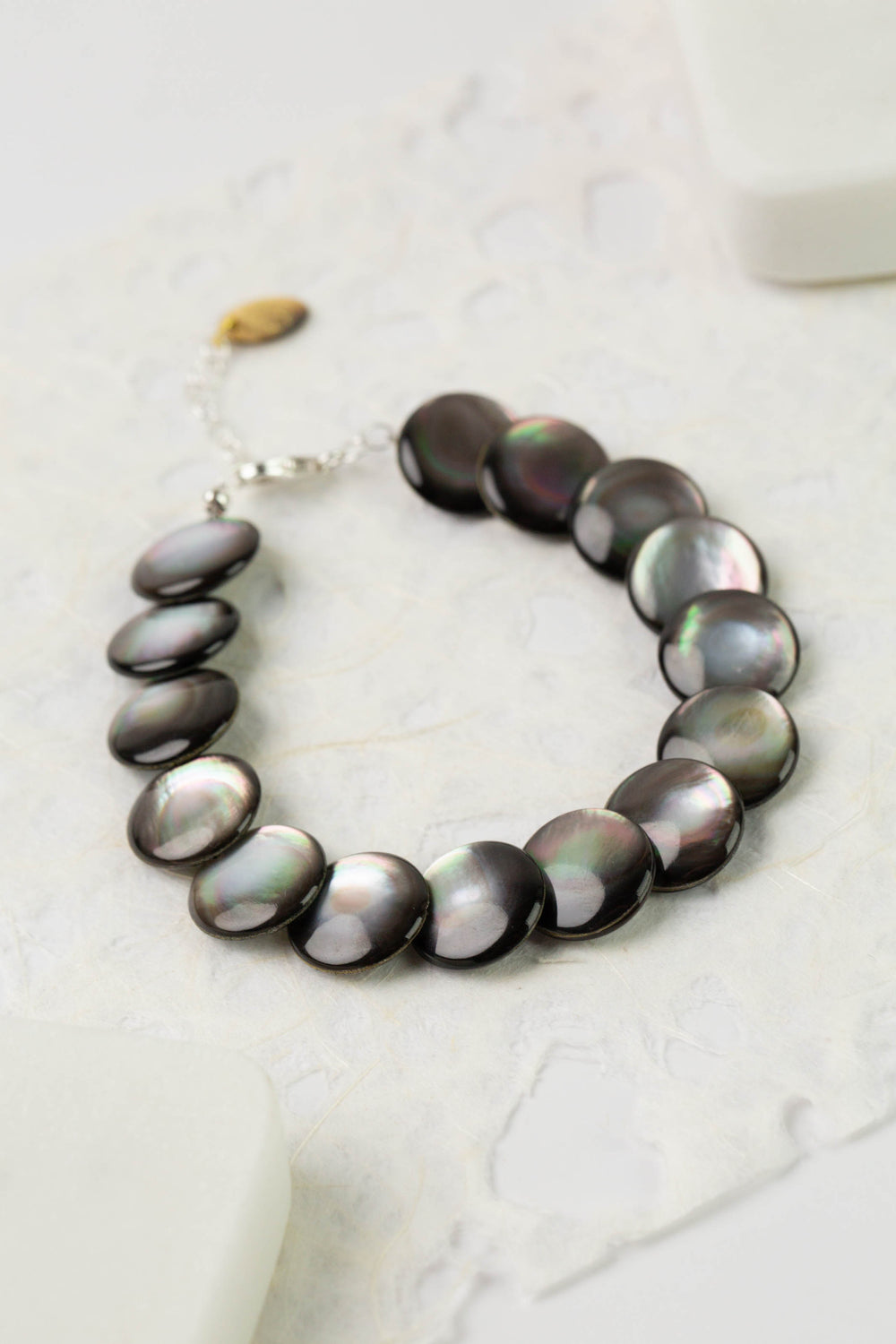 Nightfall 7.5-8.5" Black Lip Shell Circles Simple Bracelet