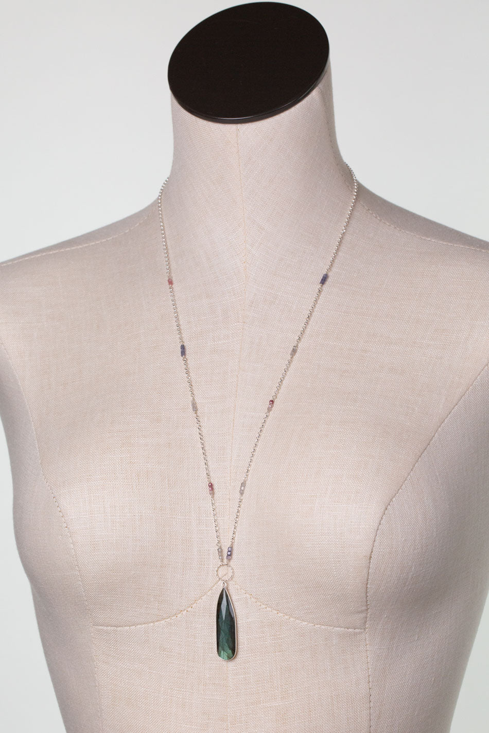 Celestial 26.5-28.5" Spinel With Labradorite Bezel Focal Statement Necklace