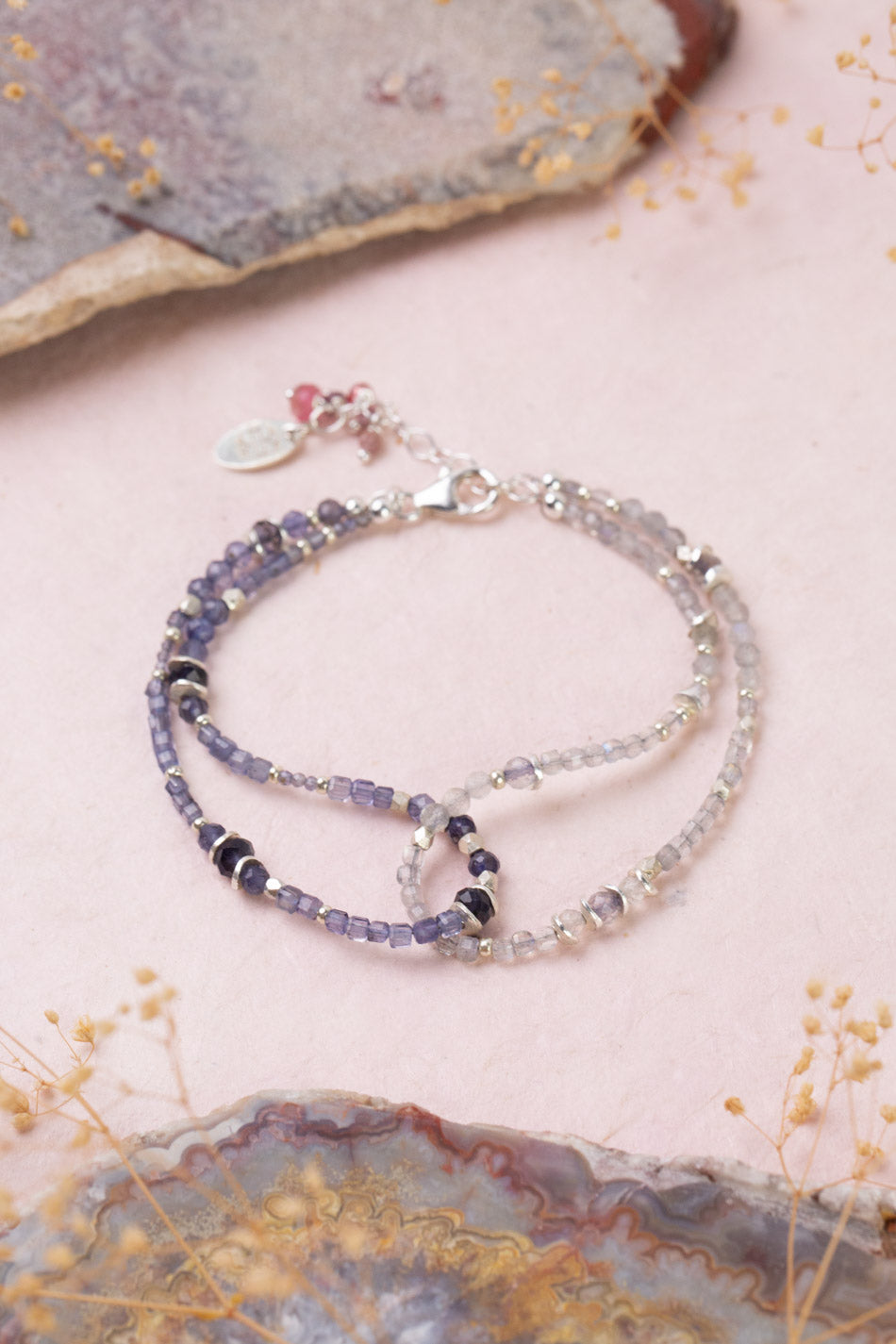 Celestial 7.5-8.5" Spinel, Labradorite Multistrand Bracelet