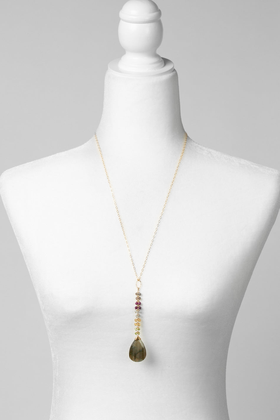 Celebrate 25.5-27.5" Peridot, Aquamarine, Citrine, Ruby With Large Labradorite Teardrop Statement Necklace
