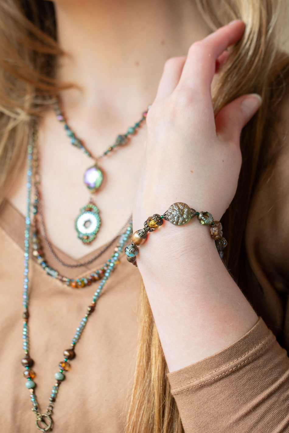Crisp Autumn 7.5-8.5" Czech Glass, Crystal, Freshwater Pearl Simple Bracelet
