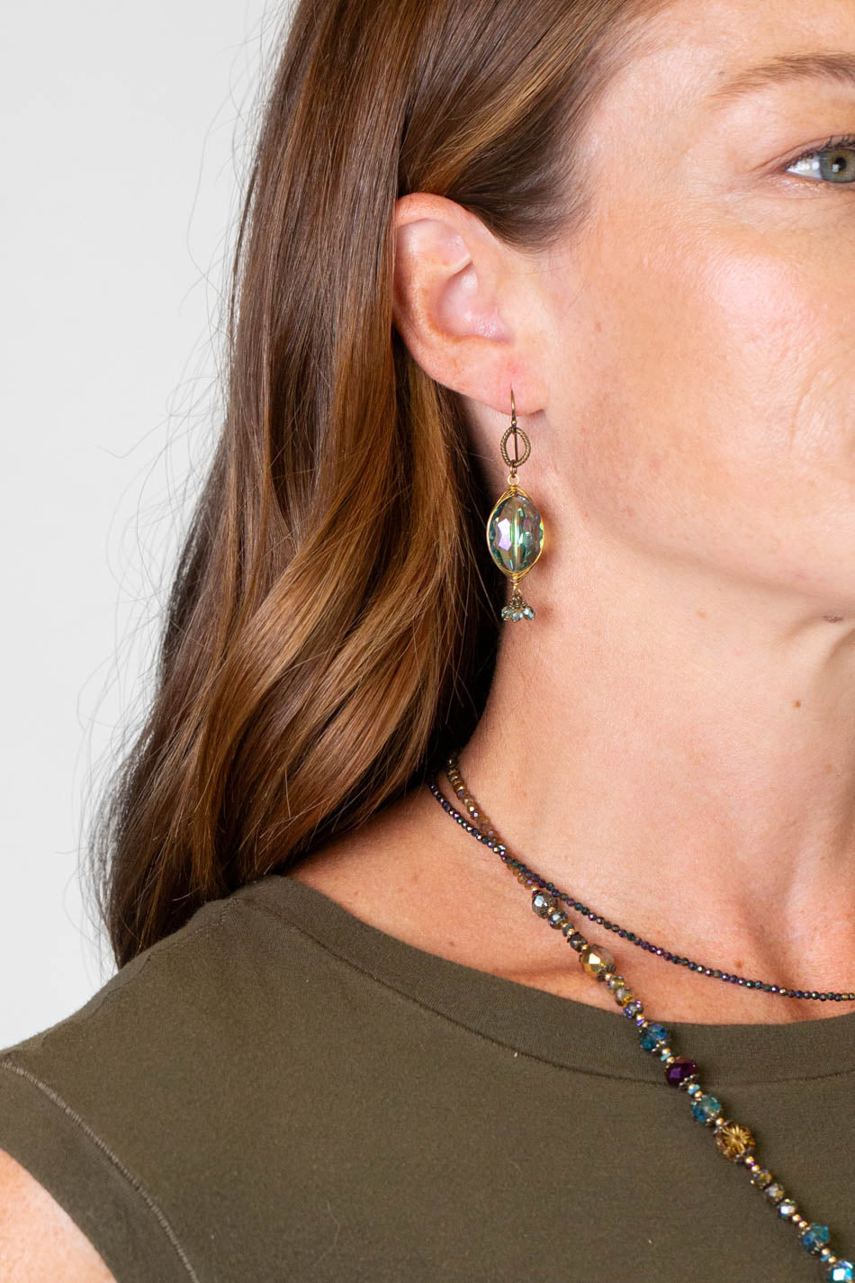 Crisp Autumn Faceted Crystal With Czech Glass Dangles Herringbone Earrings