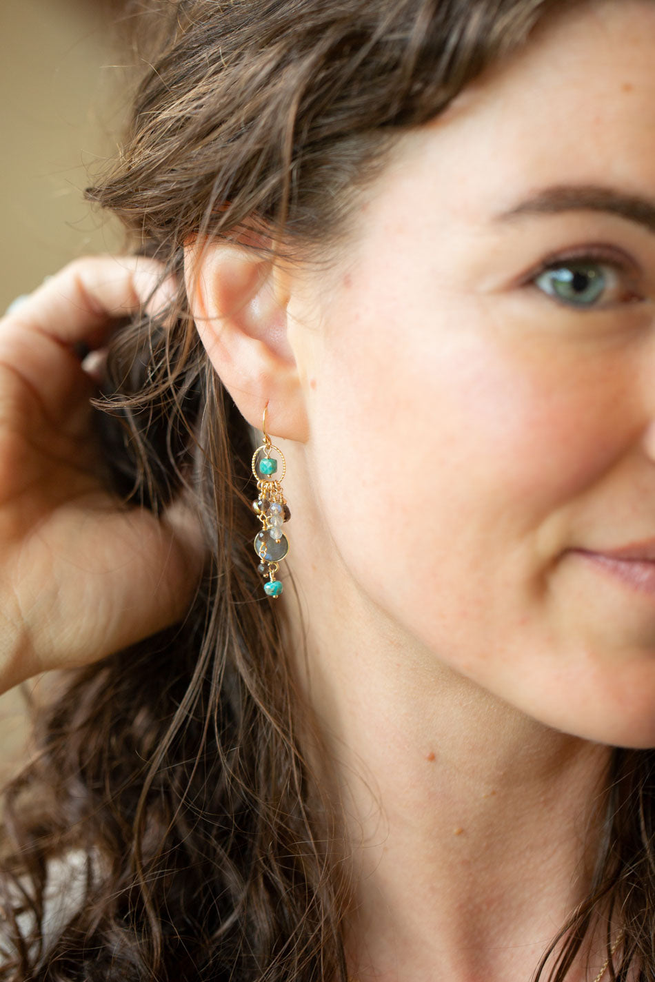 Desert Sunset Turquoise, Freshwater Pearl, Whiskey Quartz With Labradorite Dangle Earrings