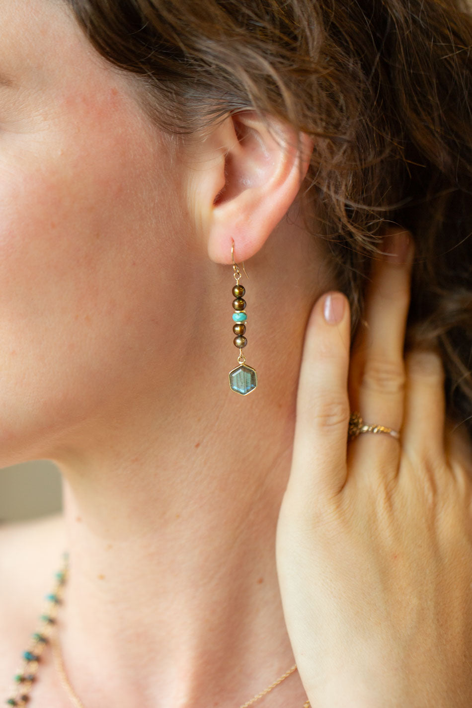 • Freshwater Pearl, Labradorite, Turquoise