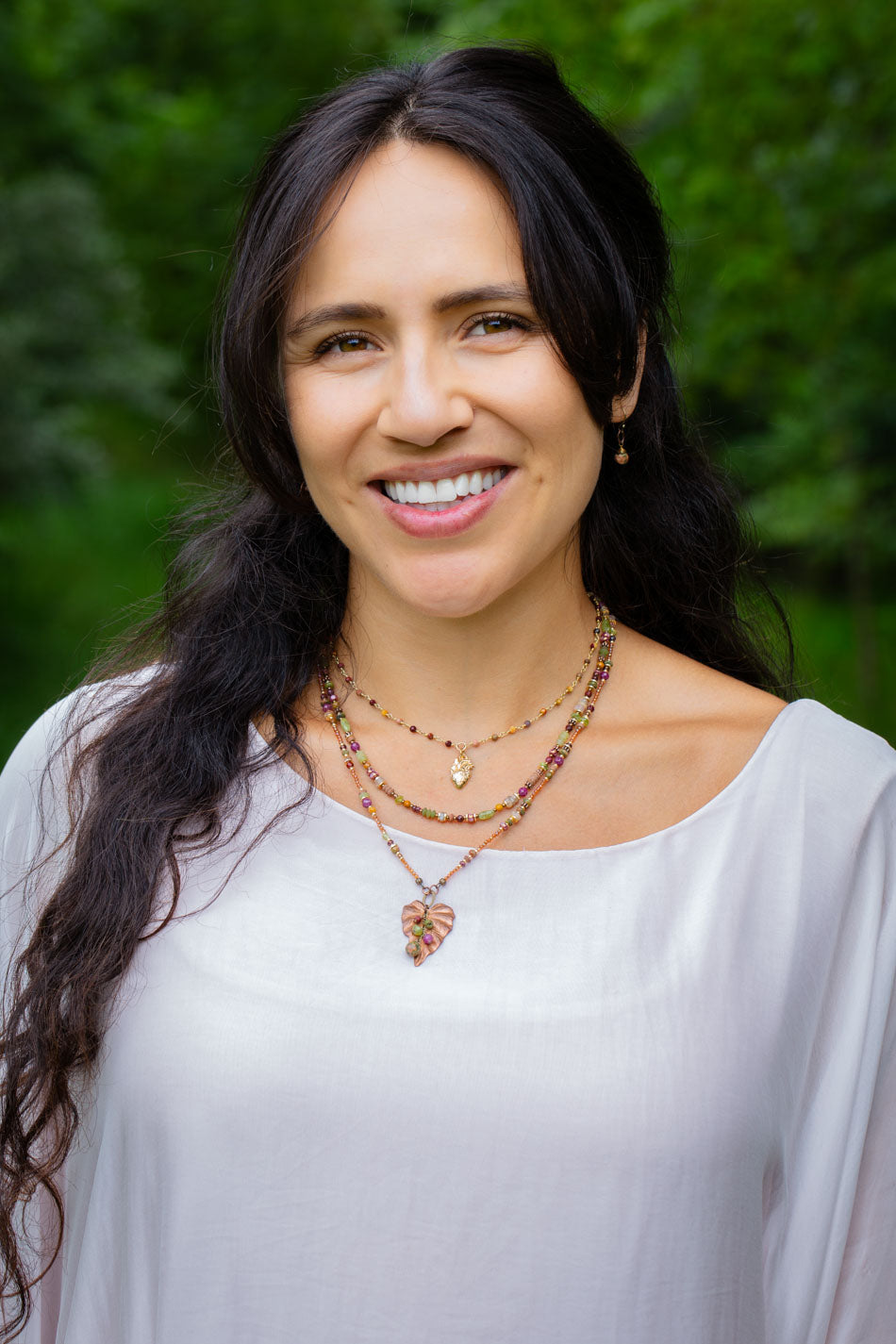 Dominion 19.5-21.5" Mookaite, Peridot, Unakite With Antique Copper Leaf Pendant Simple Necklace
