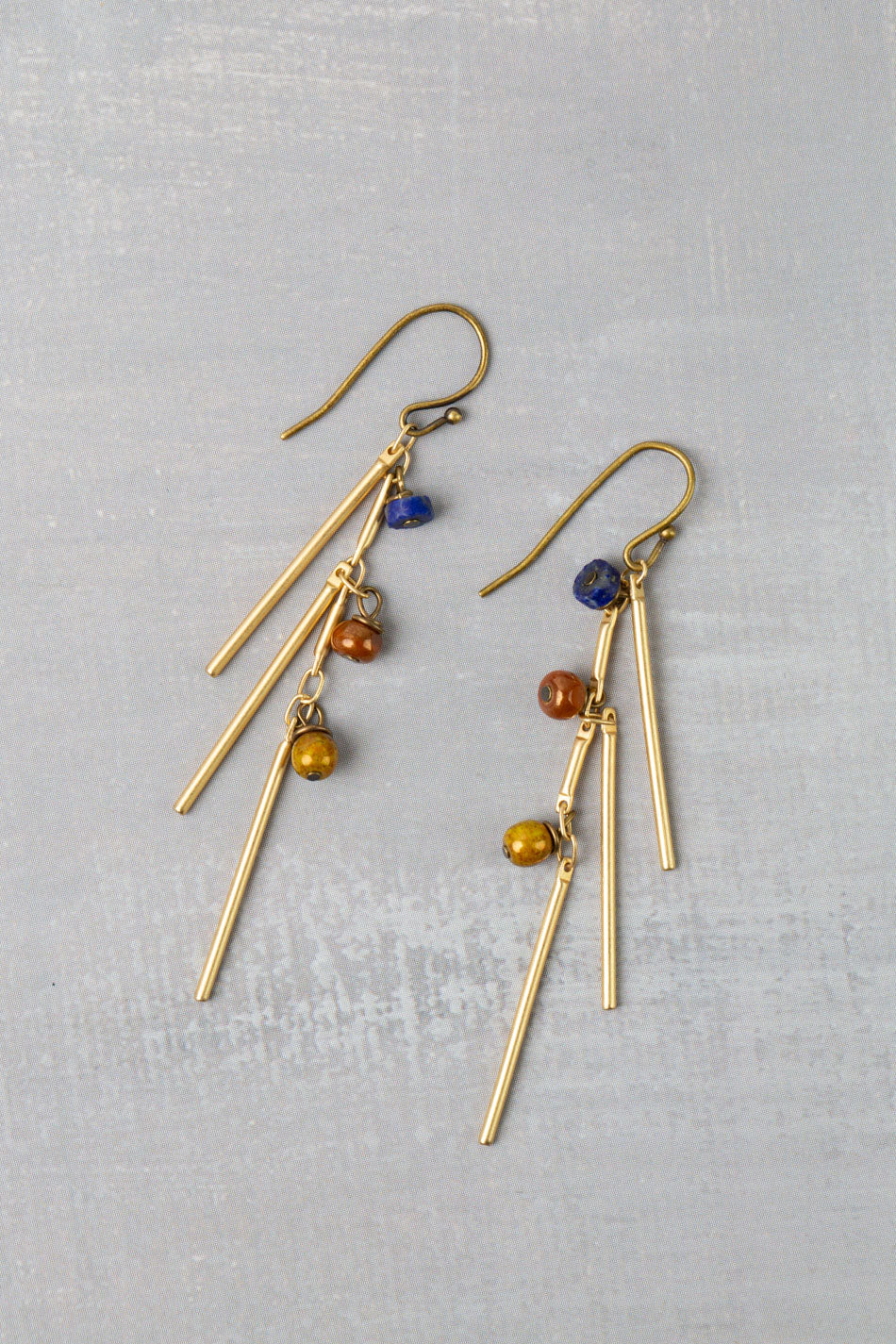Azulejo Lapis, Czech Glass Dangle Earrings