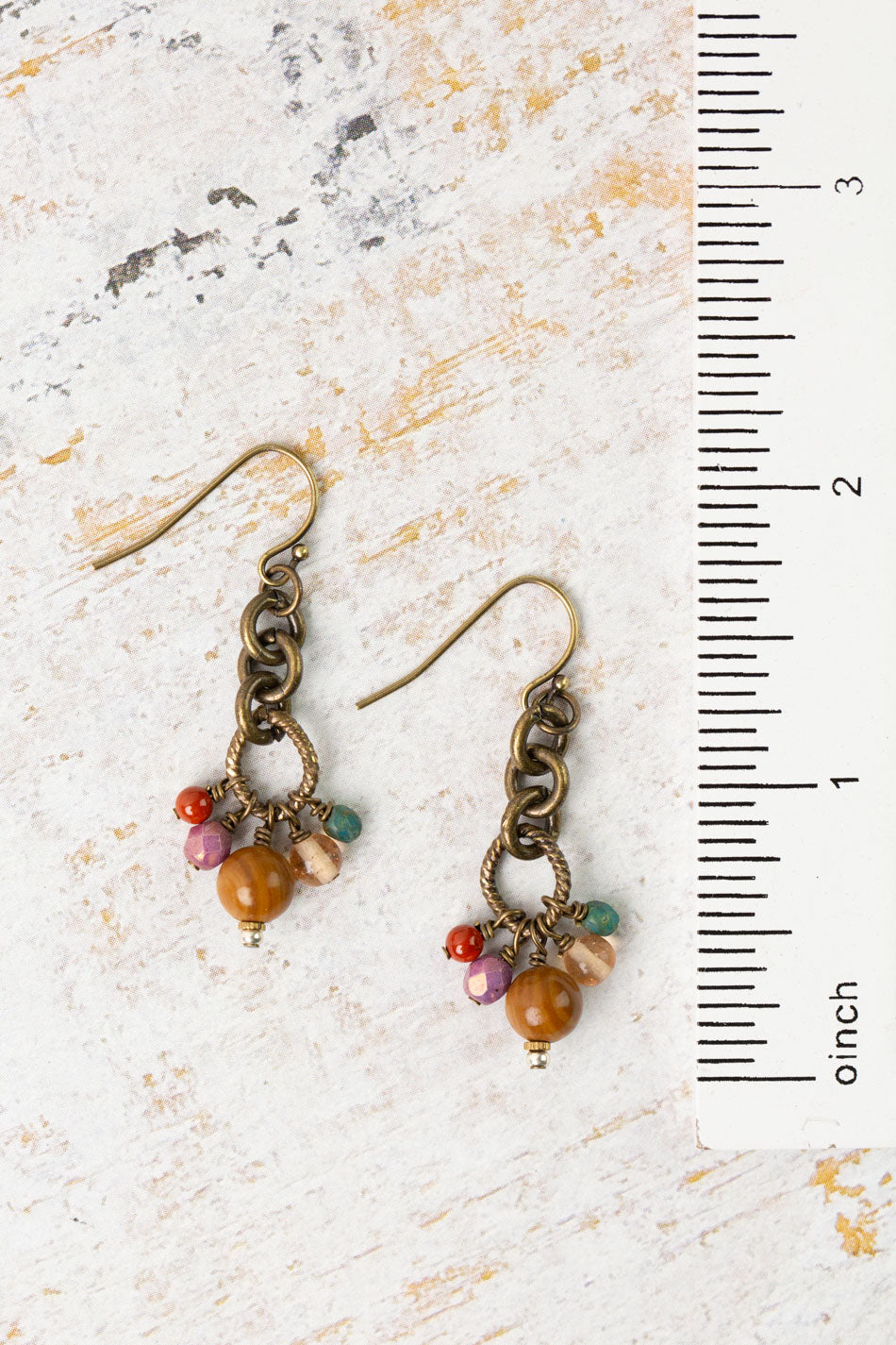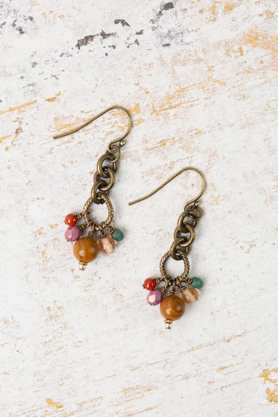 Sacred Heart Czech Glass, Lapis, Jasper Cluster Earrings