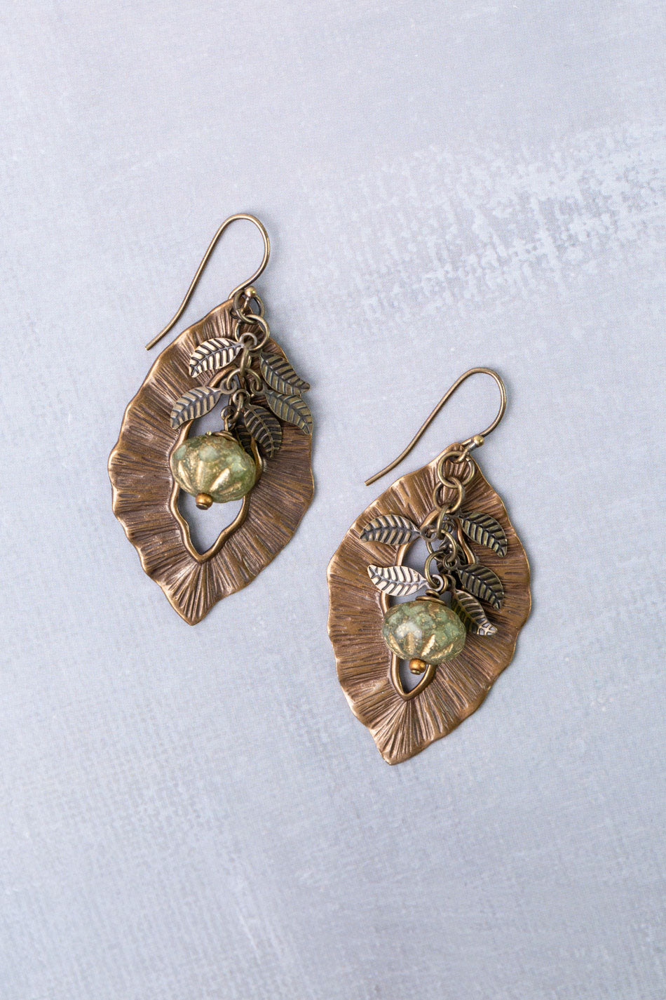 Sacred Heart Czech Glass, Leaf Statement Earrings