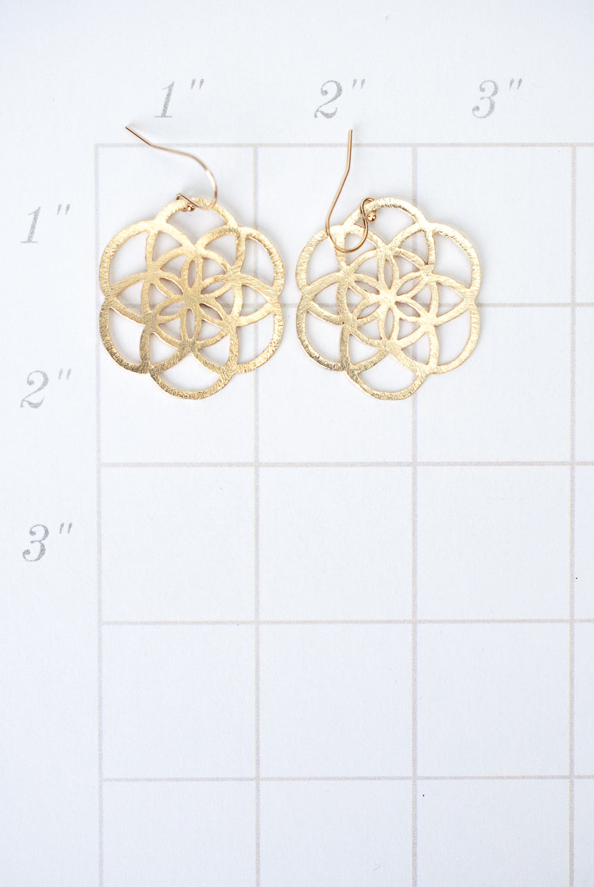 Brushed Gold Seed Of Life Sacred Geometry Earrings