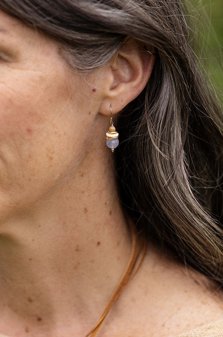 A mid length dangle earring in a simple stacked design from the Blue Lace Collection.