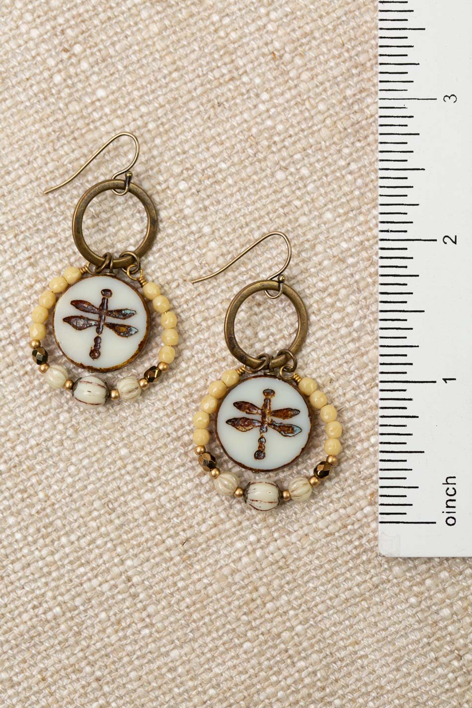 Czech Glass Stamped Dragonfly Hoop Earrings