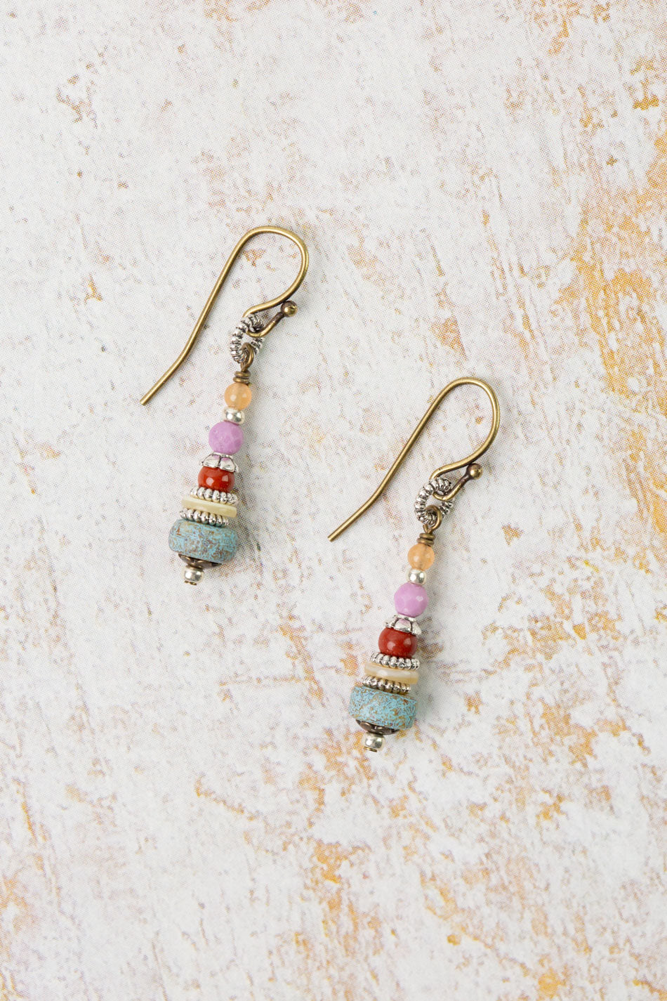 Earthen Red Jasper, Czech Glass, Shell Heishe Simple Earrings