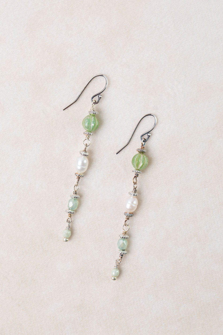 Mint Julep Pearl, Czech Glass Dangle Earrings