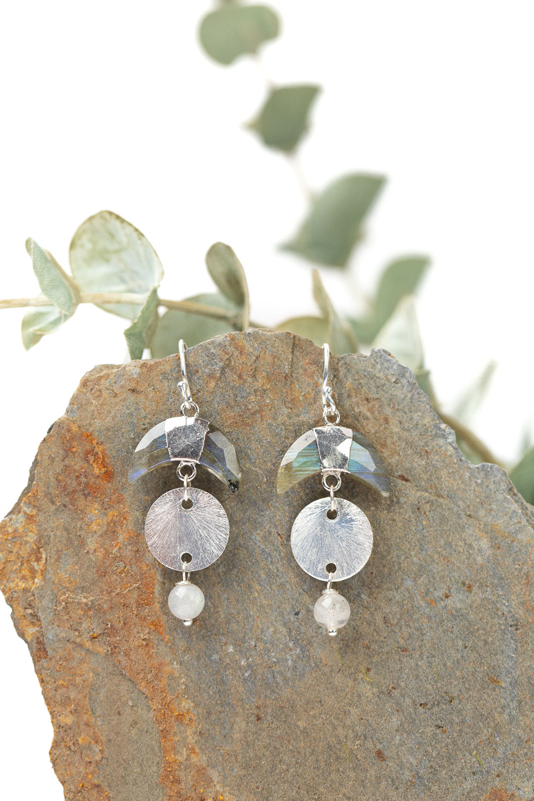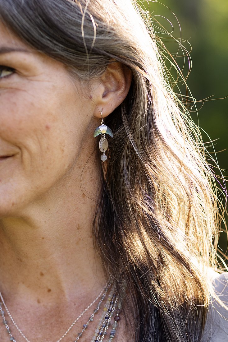 We are excited to introduce the Prism Collection to the AVD family! Handcrafted earrings featuring a unique crescent shaped labradorite focal. Wear these beauties year-round and pair with other items from the Prism collection.