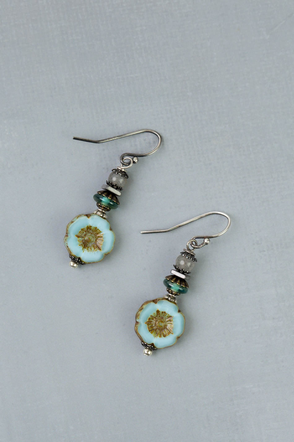 Venetian Dreams Czech Glass Aqua Flower Simple Earrings