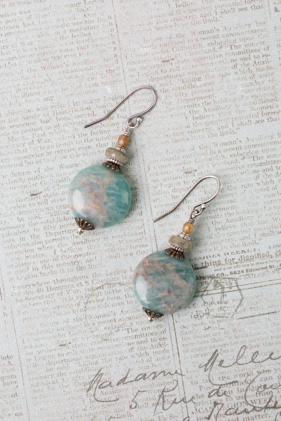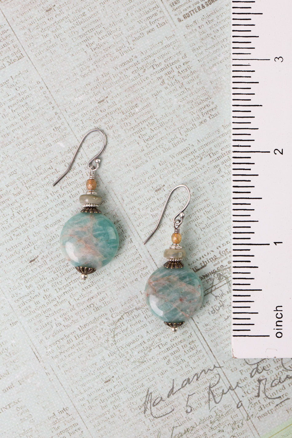 Wisdom Within Czech Glass, Cats Eye With Coin Shaped Amazonite Simple Earrings
