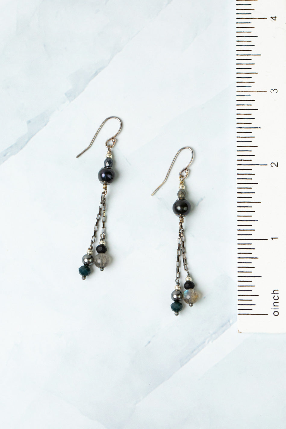 Eclipse Crystal, Freshwater Pearl Dangle Earrings