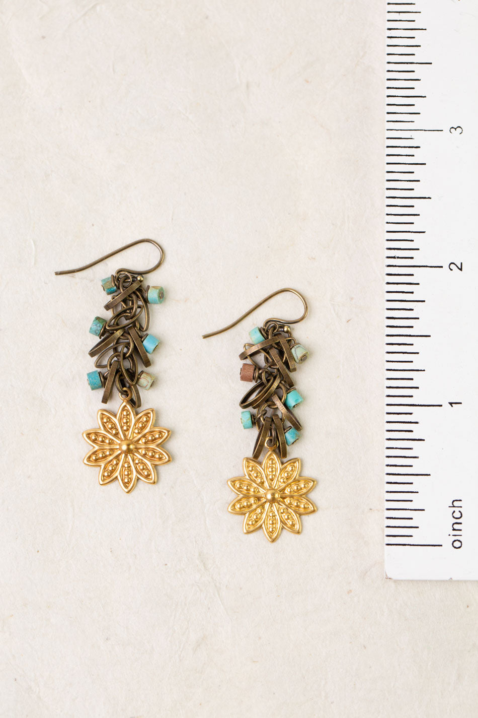 Enlighten Turquoise Chip With Brass Flower Dangle Earrings