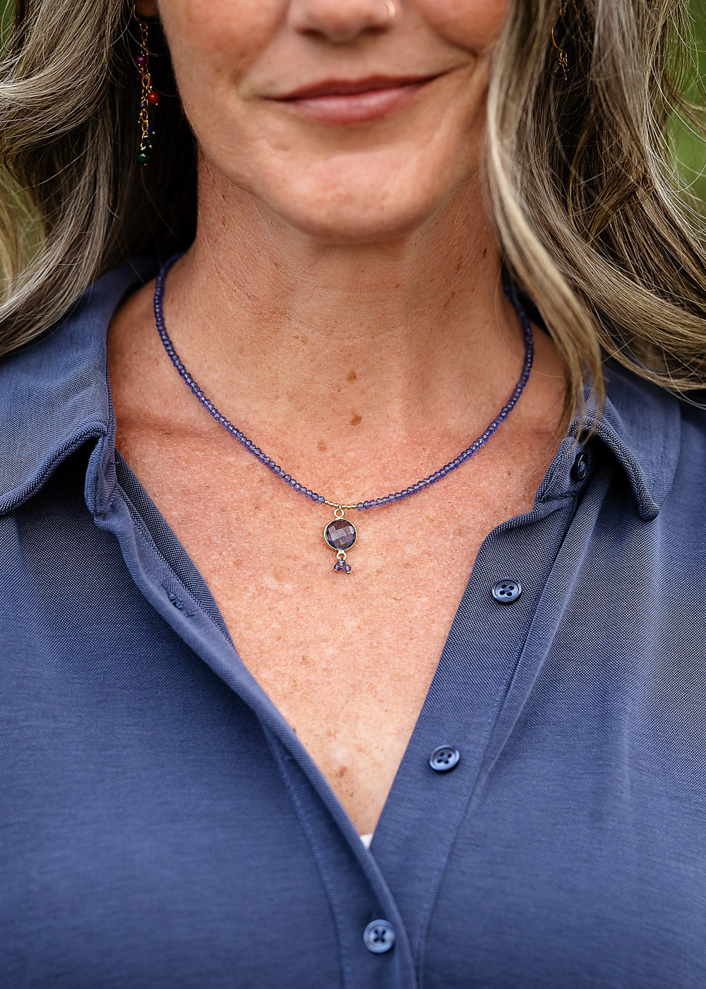 Forget Me Not 15.5-17.5" Faceted Iolite Bezel With Crystal Dangles Simple Necklace