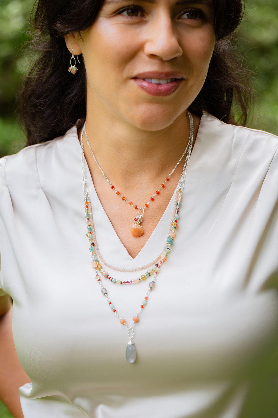 Gentle Breeze 22-24" Peach Moonstone, Carnelian, Apatite Multistrand Necklace