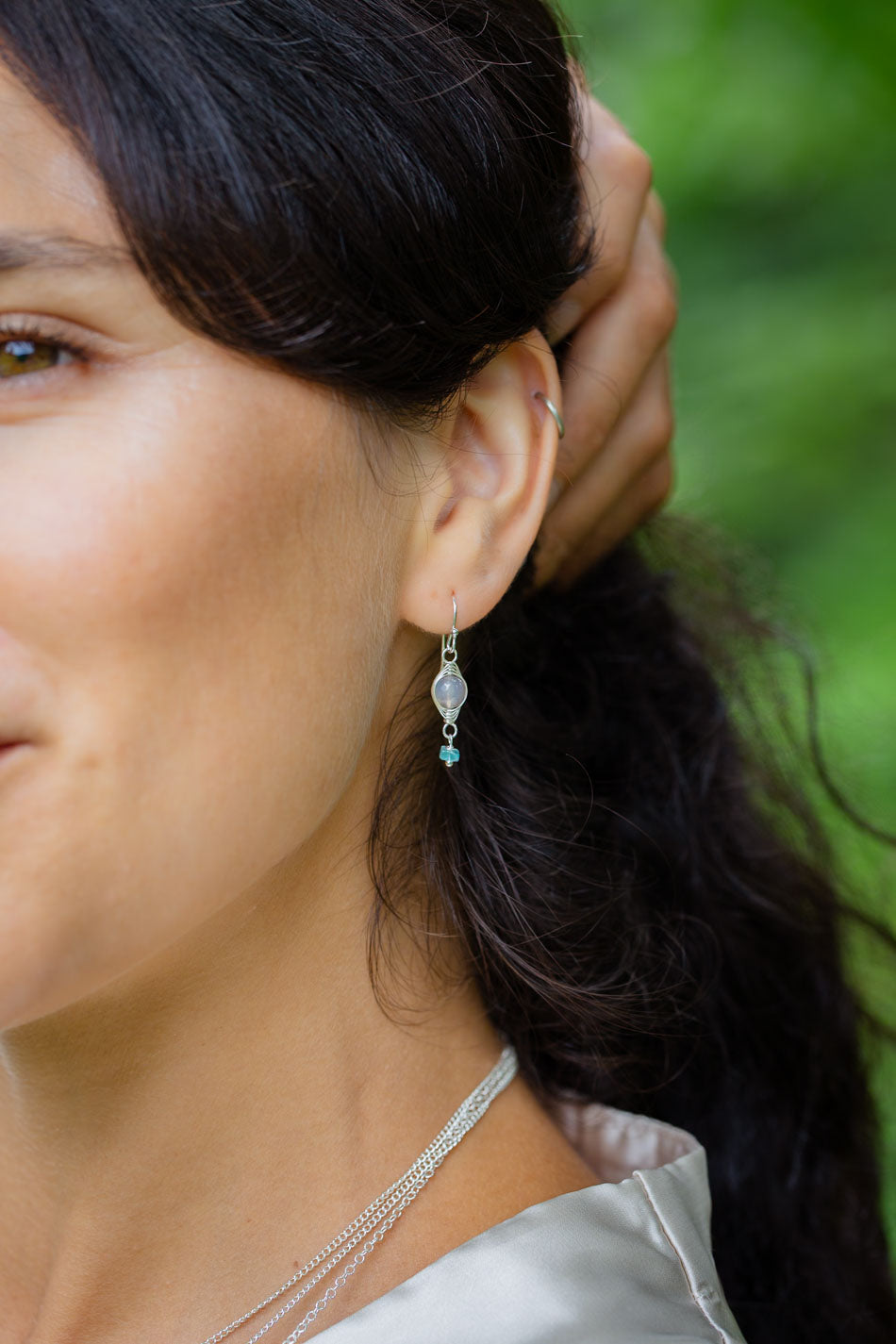 Gentle Breeze Apatite With Moonstone Herringbone Earrings
