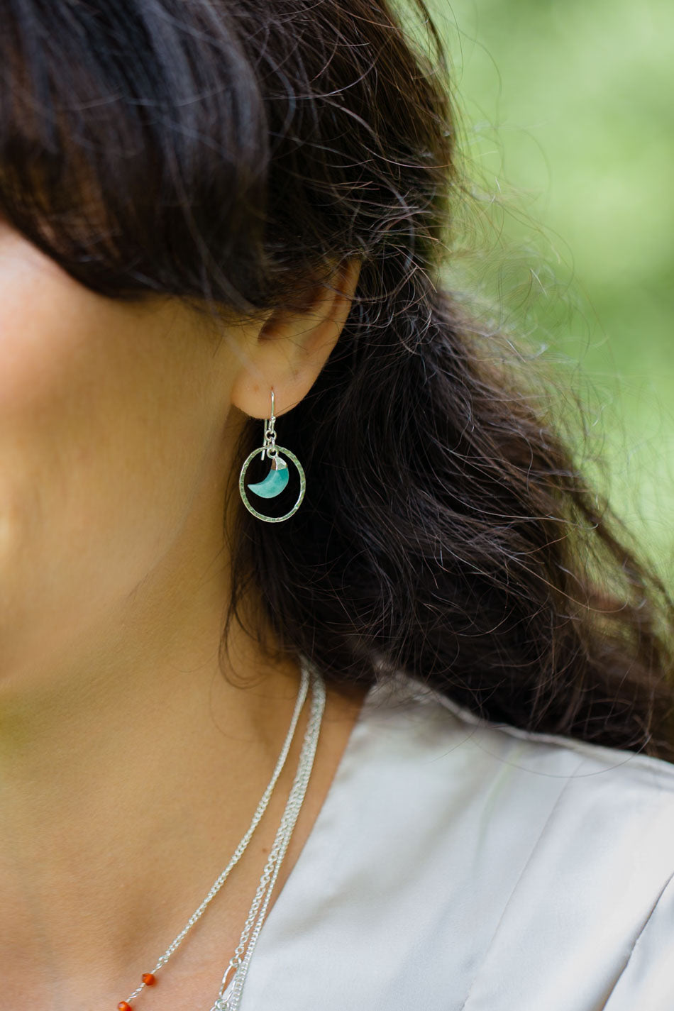 Gentle Breeze Moon With Silver Hoop Simple Earrings